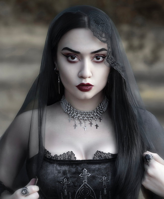 My photography style is romantic, a little melancholic, with heavy emphasis on gothic clothing and aesthetics. My creative process is very detail-oriented. When I shoot and edit, I spend hours perfecting shadows, tones, and textures because I want the final result to look good as well as evoke the theme that I want. I care a lot about atmosphere and storytelling in every image.